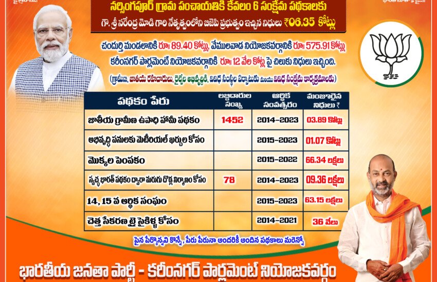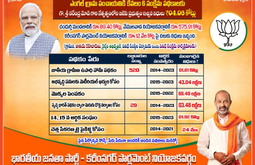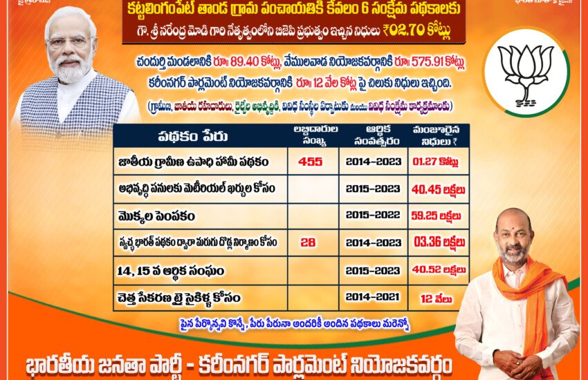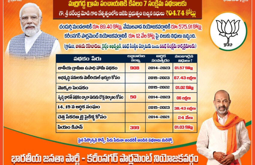 - జగిత్యాల జిల్లాలోని మేడిపల్లి నుండి గోవిందారం వరకు సింగల్ లెన్ నుండి డబుల్ లెన్ రోడ్డు 15 కీమీ – 20 కోట్లు