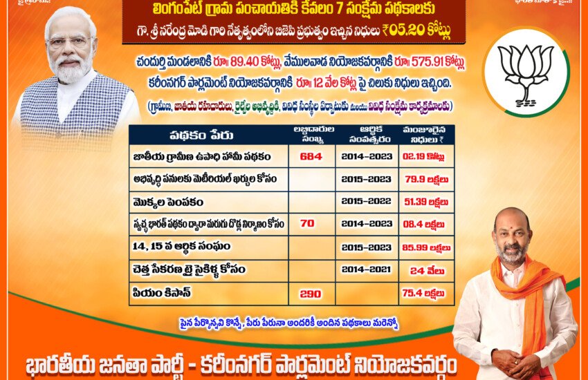 - కరీంనగర్ జిల్లాలోని బావుపేట్ (ఆసిఫ్ నగర్ ) నుండి ఫకీర్ పేట మీదుగా కురిక్యాల రోడ్డు వరకు సింగల్ లెన్ నుండి డబుల్ లెన్ రోడ్డు 16 కిమీ -24 కోట్లు