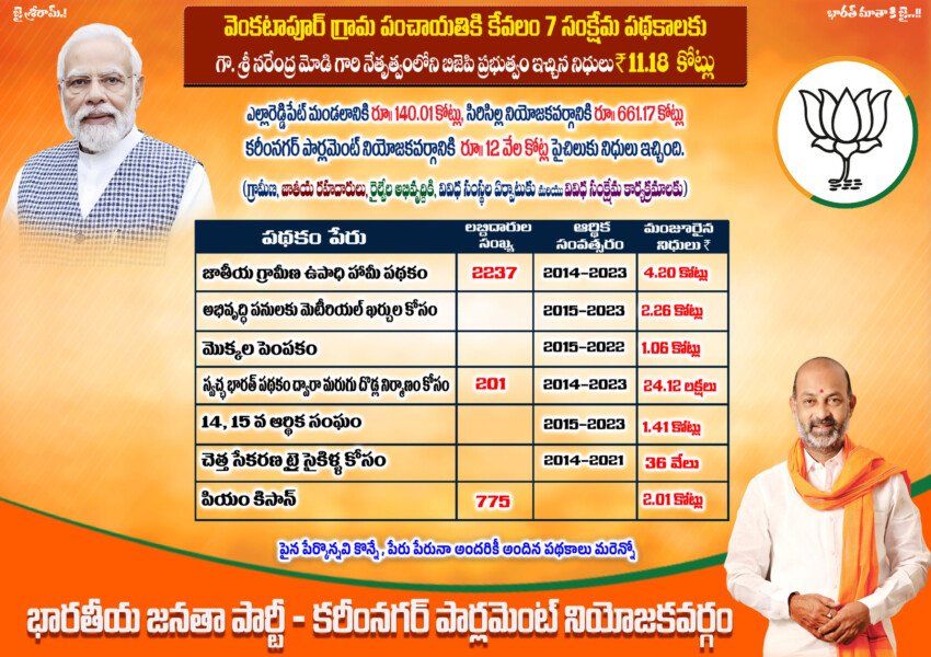 - వెంకటాపూర్ గ్రామంలో విస్తృతంగా హైమాస్ట్ లైట్ల ఏర్పాటు.